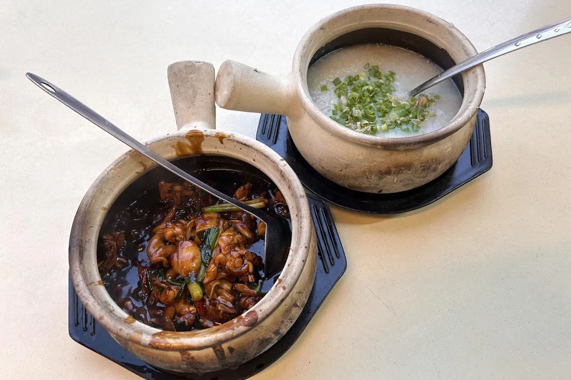Dried chilli frog and plain porridge at G7 Live Seafood & Frog Porridge Restaurant.