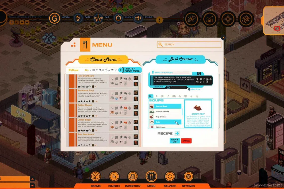Players grow alien crops, hire staff and design a menu for a diverse clientele.
