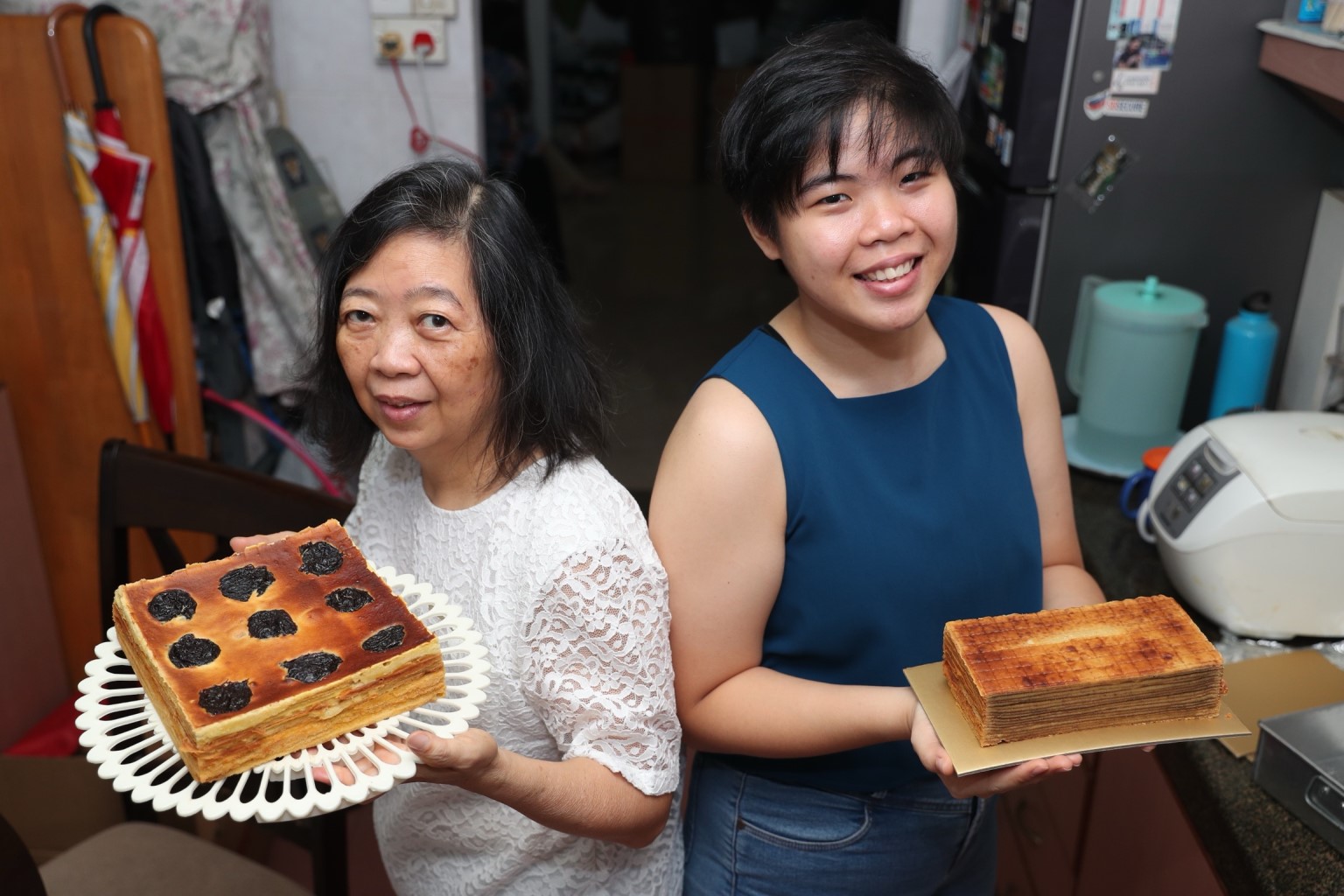 Ms Rita Ng, whose husband died of a heart attack last month, bakes and sells kueh lapis with the help of her daughter, Ms Joey Low.