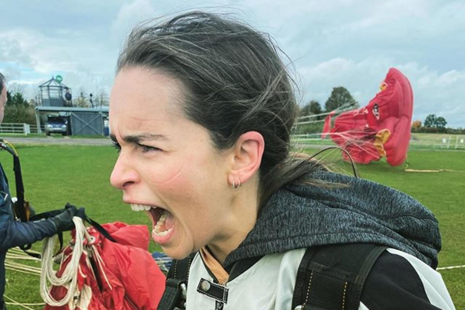 Game Of Thrones star Emilia Clarke celebrated her 34th birthday with a skydiving jump.