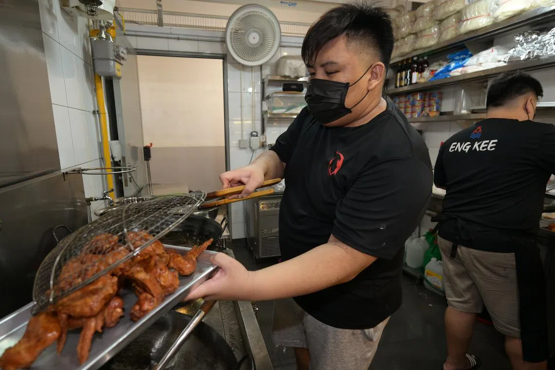 At age 26, Mr Nicholas Lim is the youngest member of his family to run his own Eng Kee Chicken Wings stall. He calls the shots at the Buangkok Hawker Centre branch.