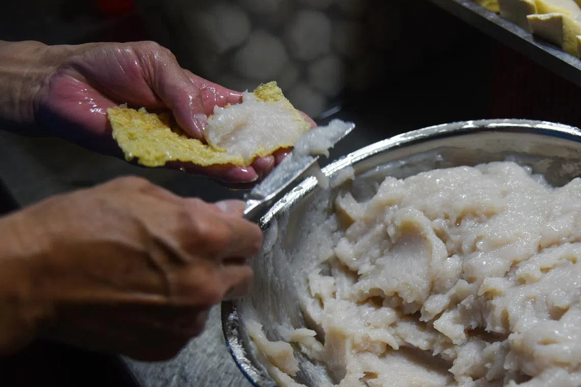 But for 26-year-old Delonix Tan, it is time for bed. The part-time hawker has to be up barely five hours later at 12.40am to begin a gruelling five-hour process that transforms frozen yellowtail fillets into fishballs.