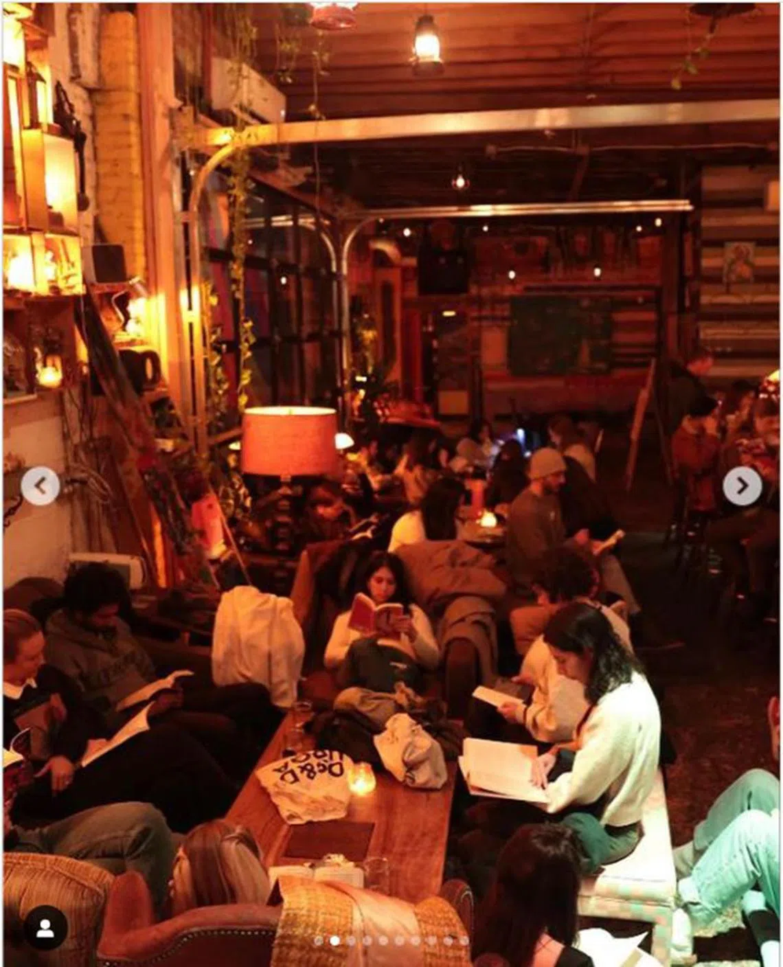 As the founders continued to host parties, they settled upon a structure. Attendees are given a name tag and half an hour to find a seat and settle in. A host then gets up before the crowd and explains the night’s schedule: 30 minutes of reading, a break, 30 more minutes of reading, and then a set of discussions organised around loose prompts. Parties are held early in the week to capture gentle, non-weekend energy.
