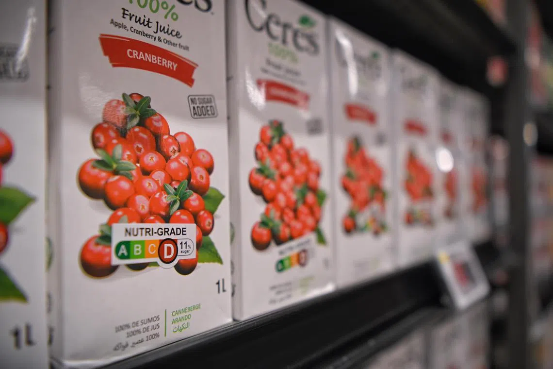 Drinks with the Nutri-Grade label at FairPrice Xtra VivoCity.
