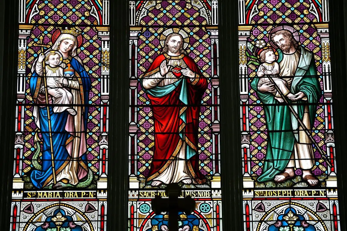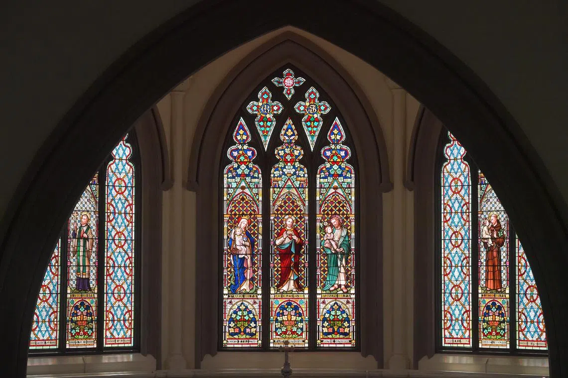 The cracked green heart of Jesus was replaced with a new red sacred heart in the centre panel at the newly-restored St. Joseph's Church in Victoria Street.