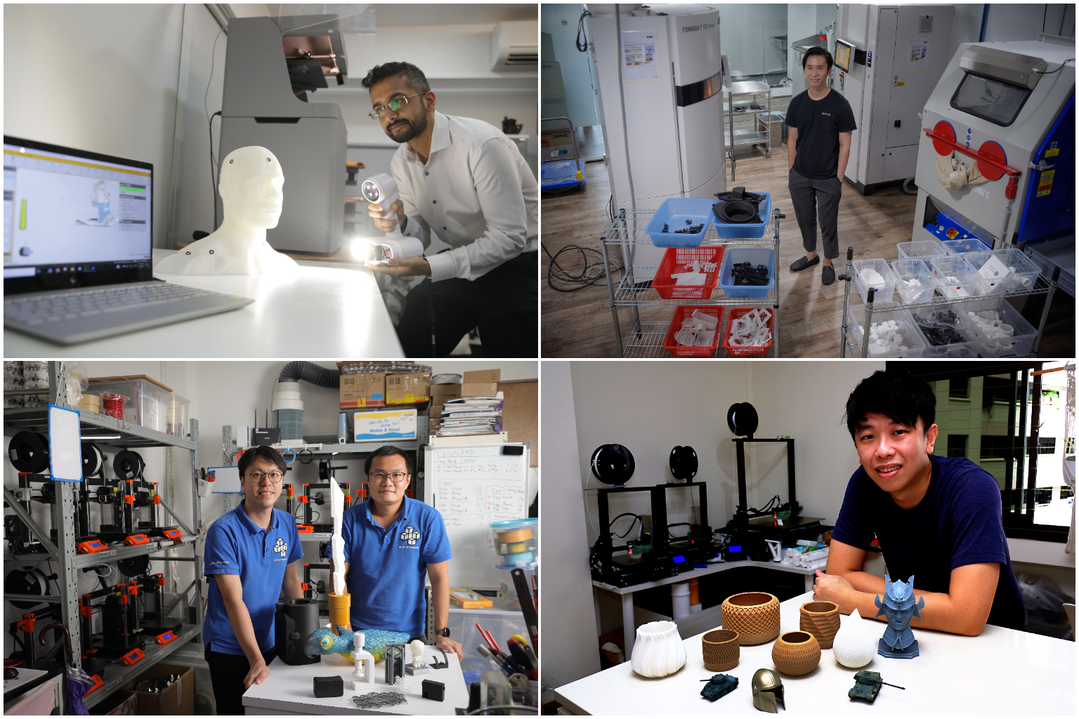 (Clockwise from top left) Chemtron Business development manager Tony Moochala, Zelta3D co-founder Wong Ming Zheng, Hexar Creations founder Jeremy Wee and 3D Print Singapore co-founders Colin Ouyang and Francis Chang.