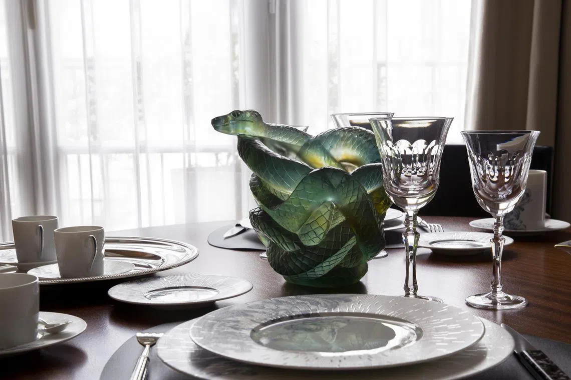 For a stunning table centrepiece that takes pride of place in any table setting from Christmas to CNY, consider the Snake Vase ($8,100) by French crystal house Daum.