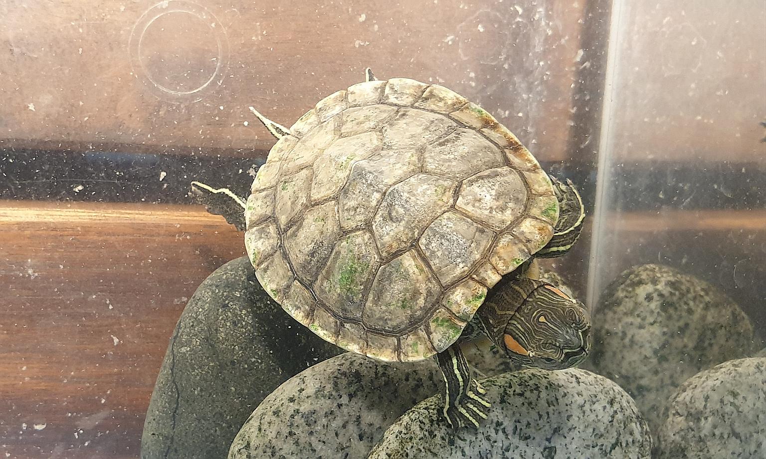 Dr Shawn Chia: Discolouration of a slider's shell may be due to several reasons.