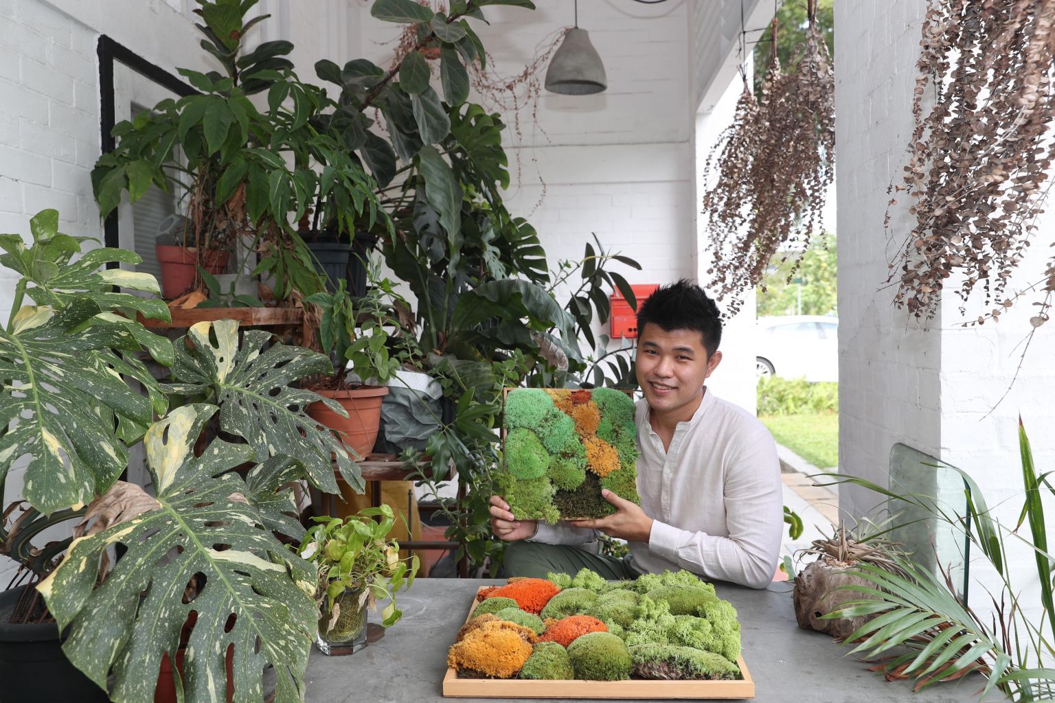 InOut Atelier’s co-founder and art director Chia Ming Kuang with his “mosstallations”.