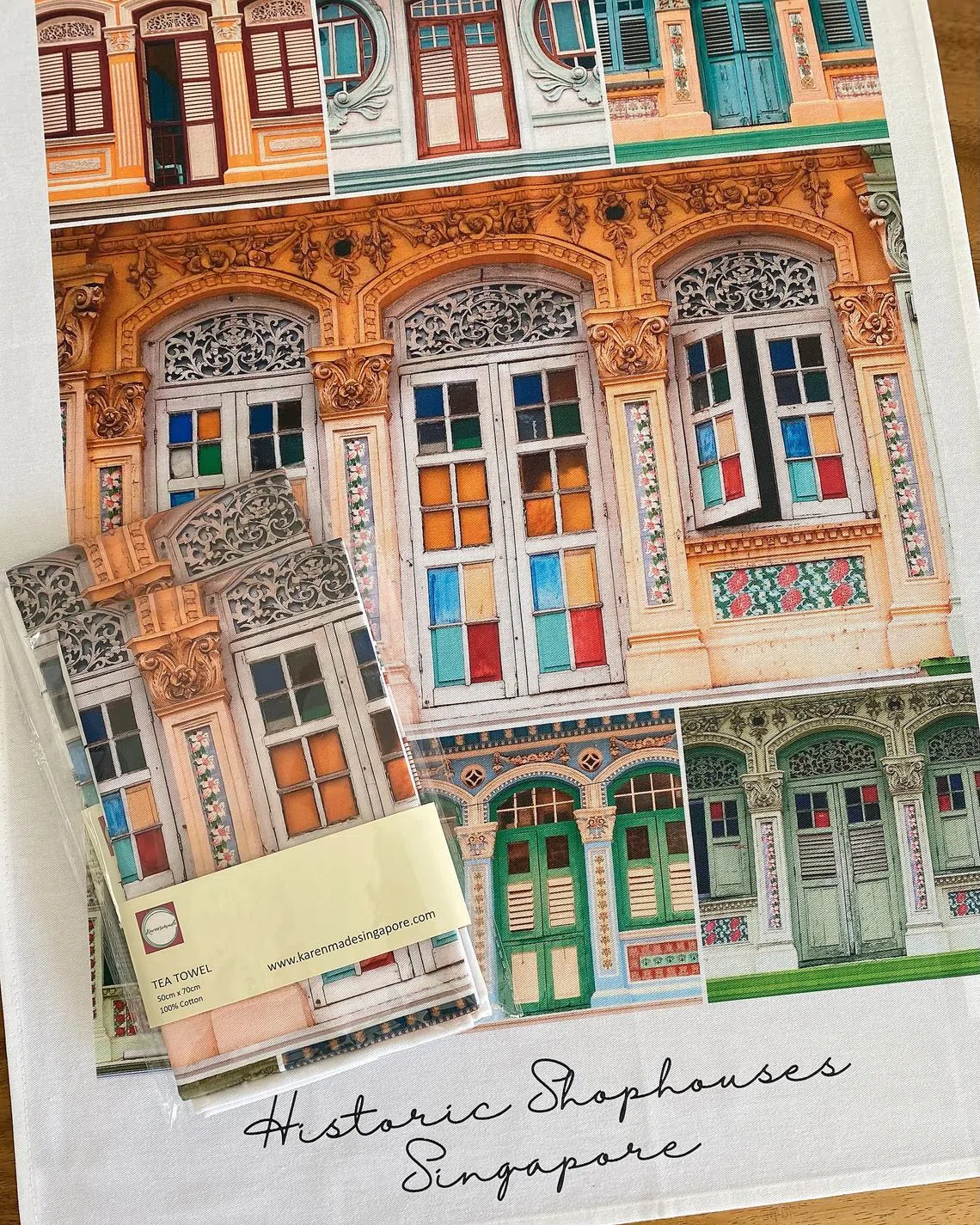 Shophouses have always fascinated Karen Fernandez, founder of online gifts store Karenmade, who has immortalised them in tea towels and coaster sets.