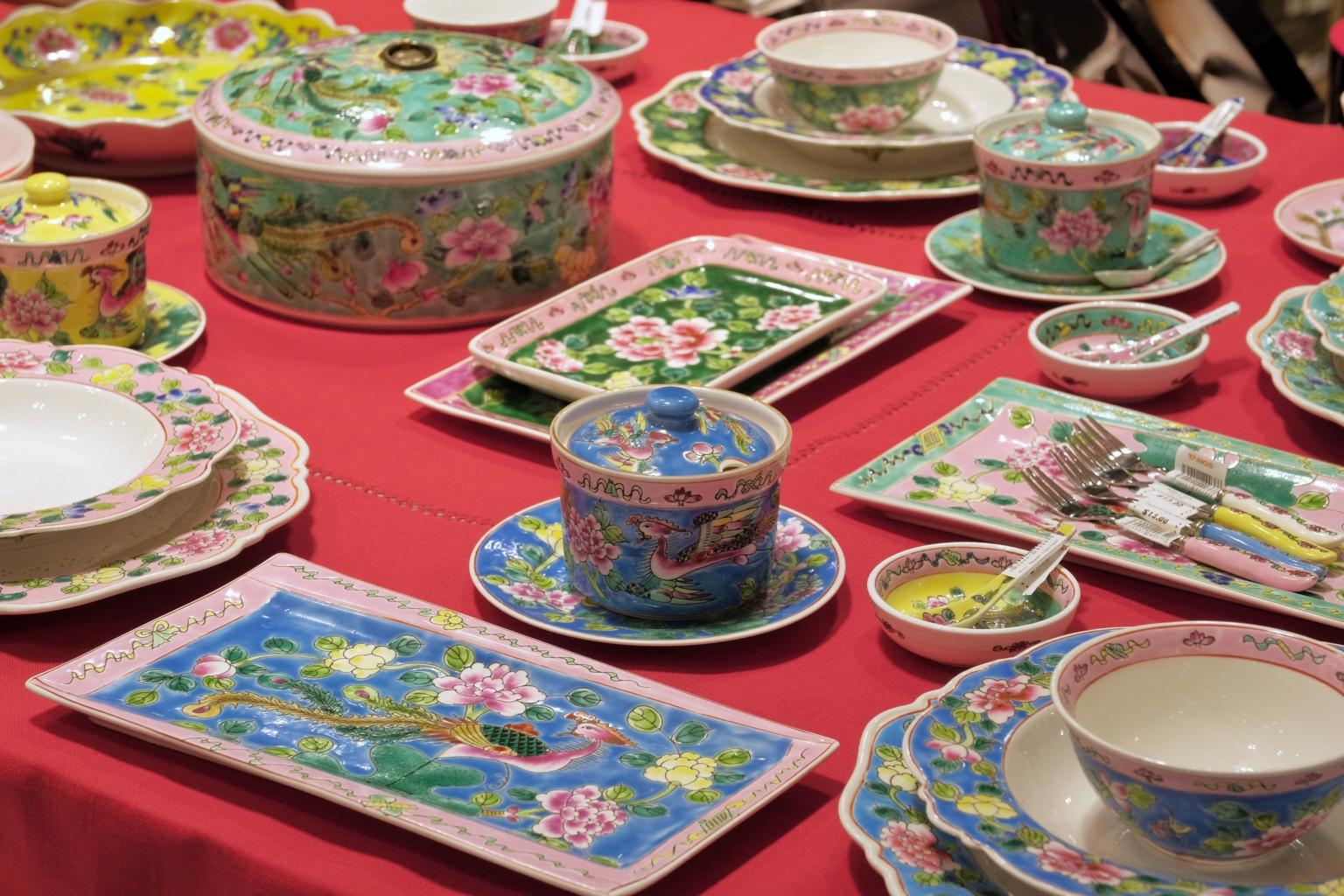 The handcrafted pieces from the Peranakan porcelain tableware line are double-glazed and fired, featuring a vibrant colour palette of yellow, turquoise and pinks.