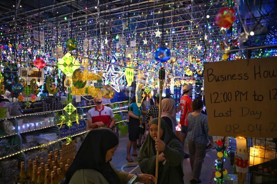 Stallholders selling decorative lights at Geylang Serai Ramadan bazaar on April 2.