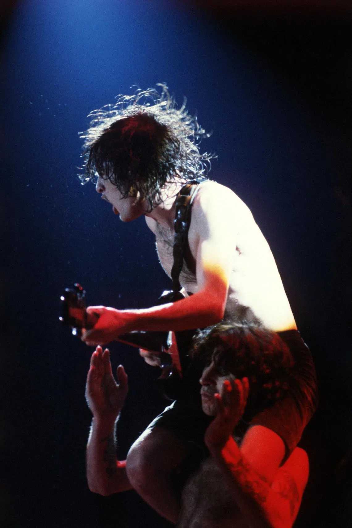 Hannes Schmid has toured with legendary rock bands such as Queen, capturing their electrifying performances in more than 70,000 photographs. This shot was taken in 1979 of AC/DC frontman Angus Young perched on the shoulders of lead vocalist Bon Scott, who died in 1980.