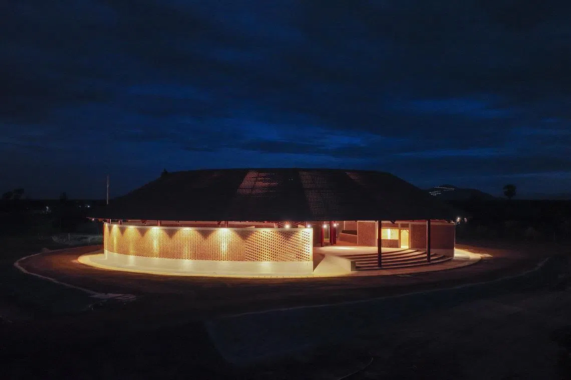 Materials such as concrete, steel and bricks offer durability in Cambodia’s humid climate, while the architecture and design of the roof and outer shell promote natural ventilation. Work started on The Gong in 2023.