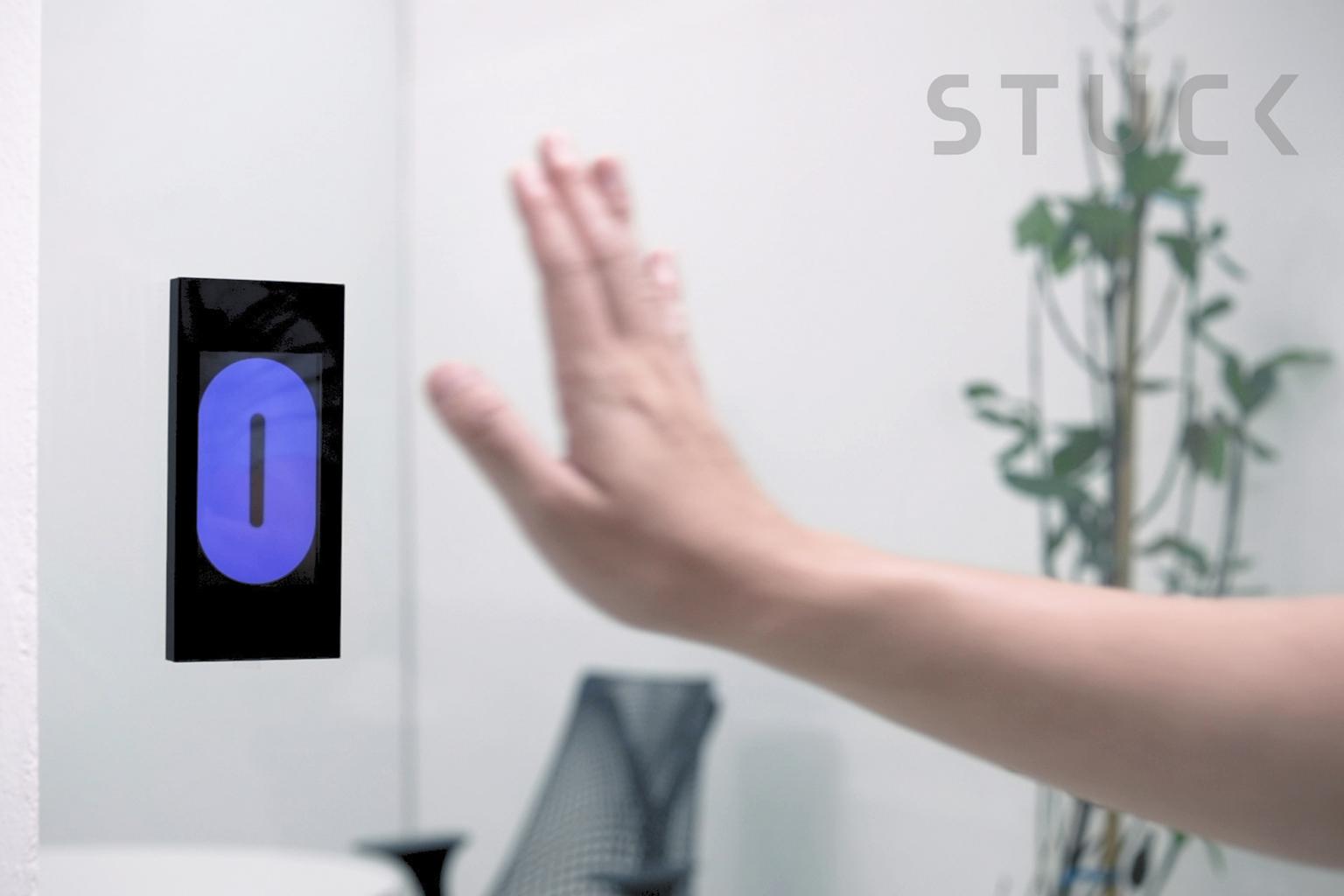 "Touchless tech", such as this touchless door button from Stucklabs, is becoming the norm amid the current war on microbes.