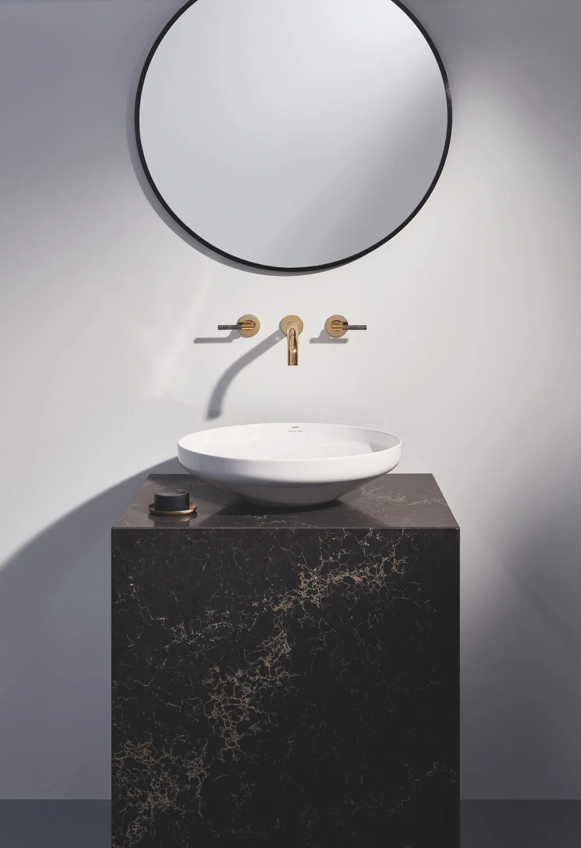 The award-winning Grohe Spa Atrio Private Collection of sinks and tap fittings features a wide range of lever options, Caesarstone-designed quartz inserts and colours for bespoke bathroom interiors.