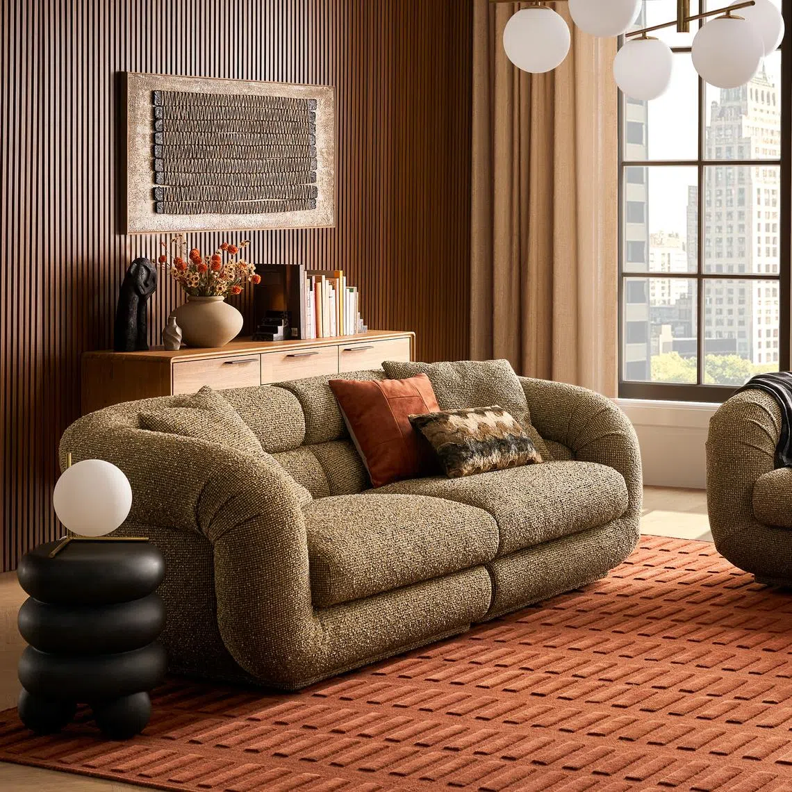 Highlights include the Solari fabric sofa (from $2,398), which comes in olive green and boasts a curved and chunky silhouette. It is a modular set, so customers can choose a configuration that works for them – with or without an ottoman – that can be adjusted later according to their needs.