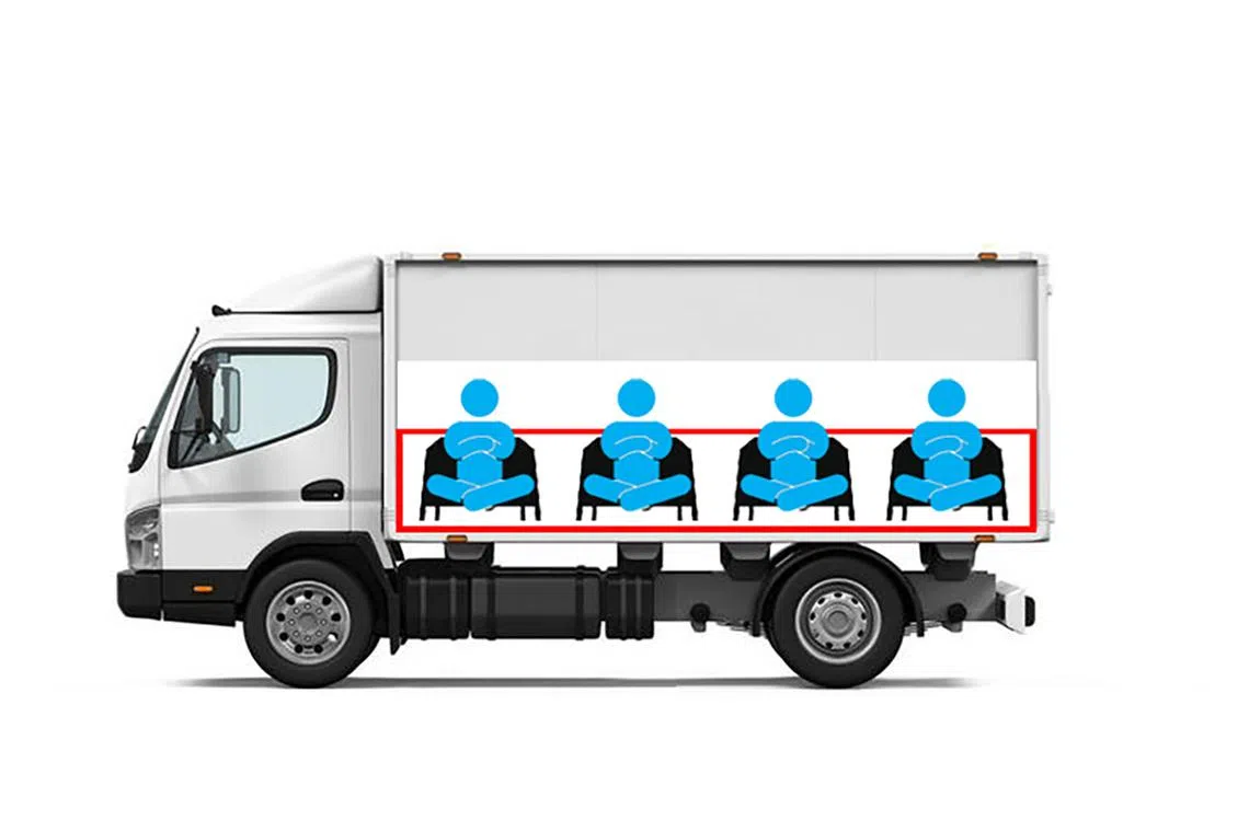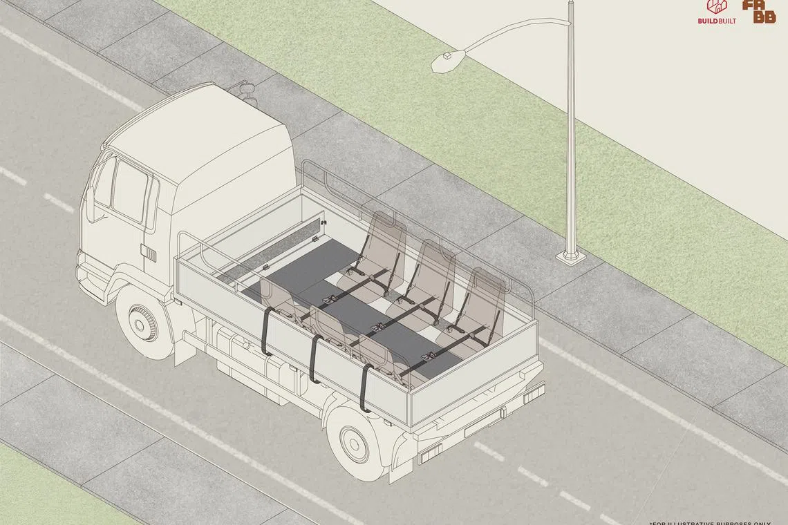Designed by founder Jackie Lai, JIA Studios' concept for lorries adds seating for migrant workers to have a more comfortable ride.