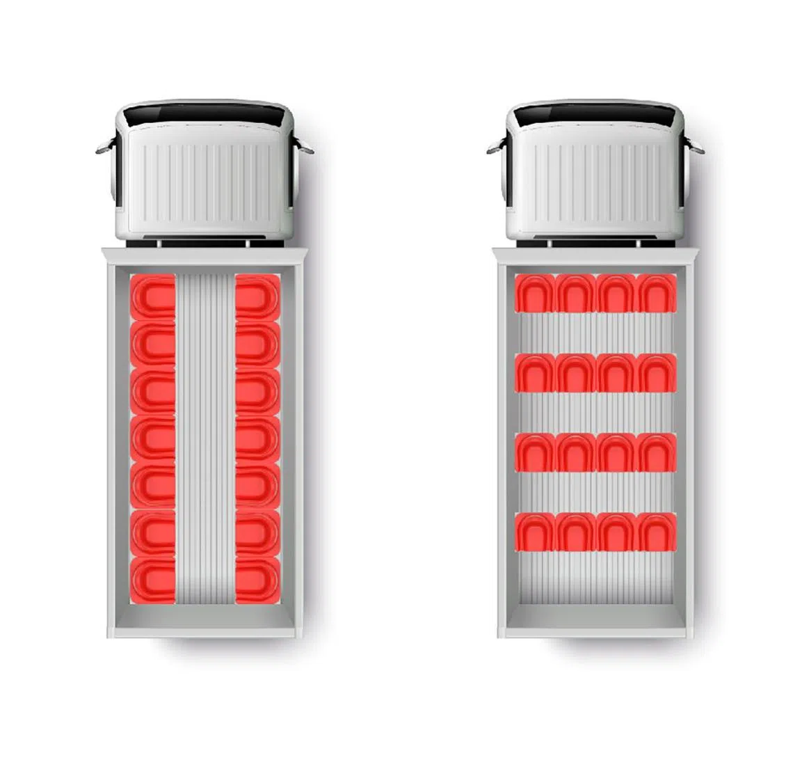 Besides being easily stackable, the chairs can be locked together so they do not slide around when the lorry makes sharp turns or stops.