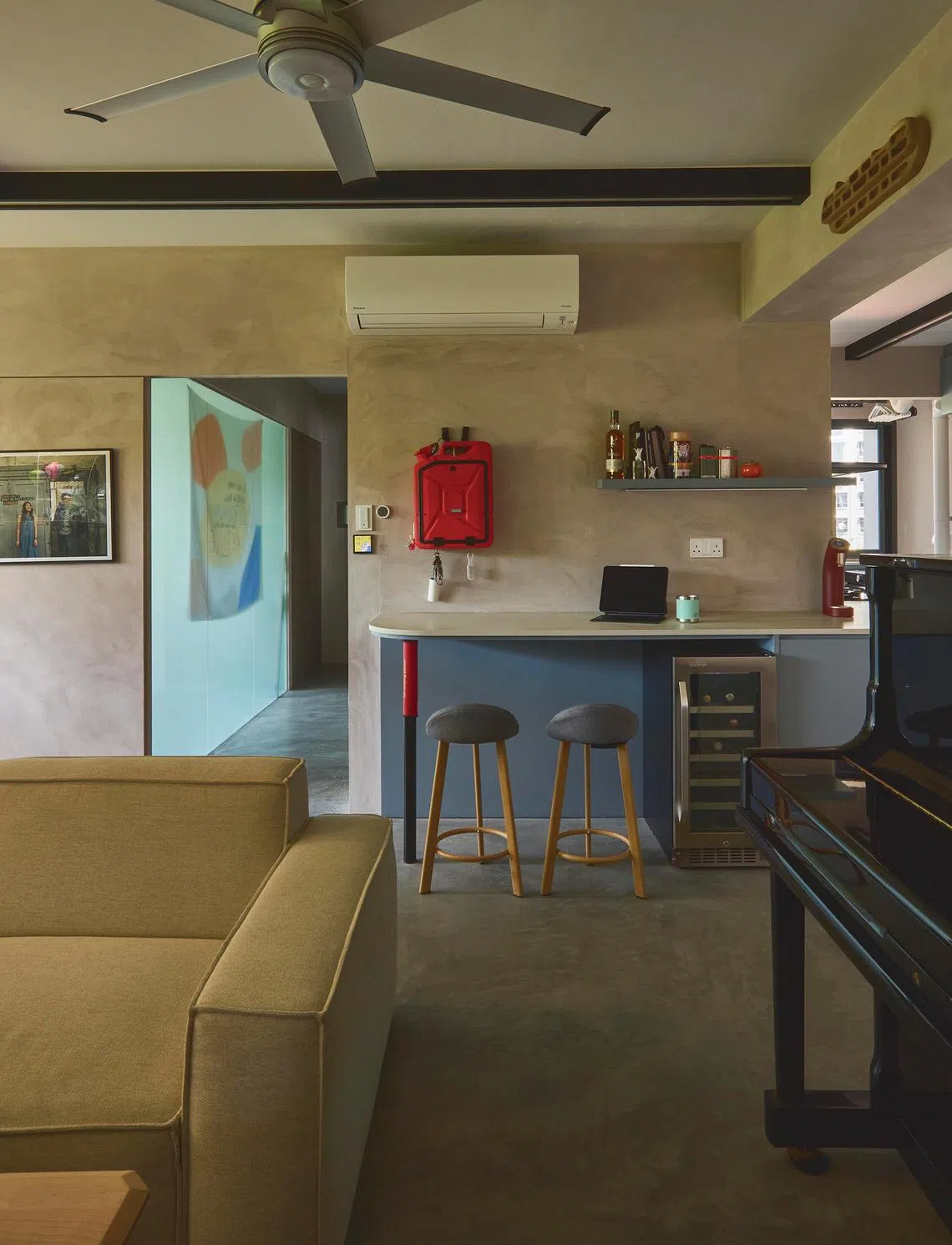 The upshot of the long wait was that the couple had plenty of time to select a style for their home. They eventually chose a hybrid Brutalist and minimalist aesthetic, hiring Mr Jax Ren and Mr Joshua Wee from local interior design firm Threehaus Works.