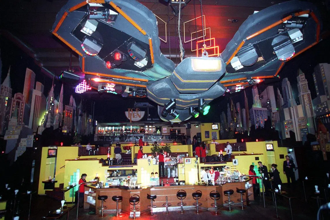 One of Singapore’s most successful nightspots, Top Ten opened in 1985 at Orchard Towers, and was a hit with locals and tourists for its three-storey-high ceiling and replica of a city skyline illuminated on its walls.