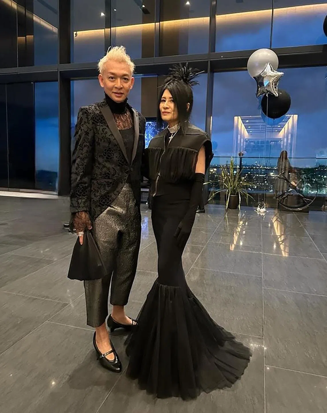For example, for an event in November, I wore a tailored embossed velvet tailcoat over a black lace top from the women’s section of Zara, and paired this with silver jacquard cropped trousers from Thai label Greyhound.