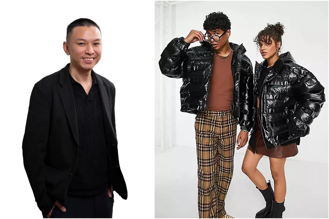 Communications director Jarieul Wong (left) in a knitted shirt from Zara. He is also excited to wear his Asos puffer jacket during an upcoming holiday in 2024.