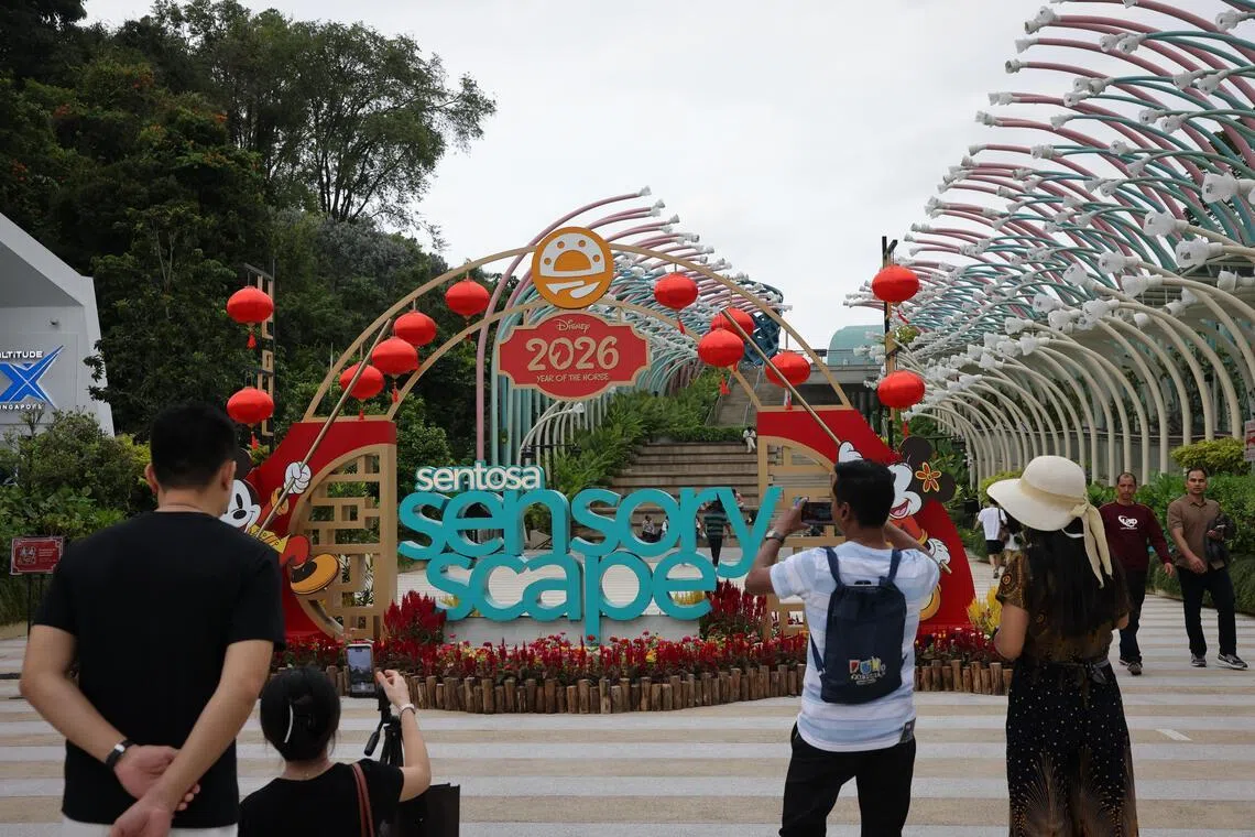 SINGAPORE – Sentosa is ringing in the Year of the Fire Horse with a touch of Disney magic. From Jan 30 to March 3, its 350m-long linkway, known as Sensoryscape, unveils a free treat for visitors titled Gallop Into Spring.