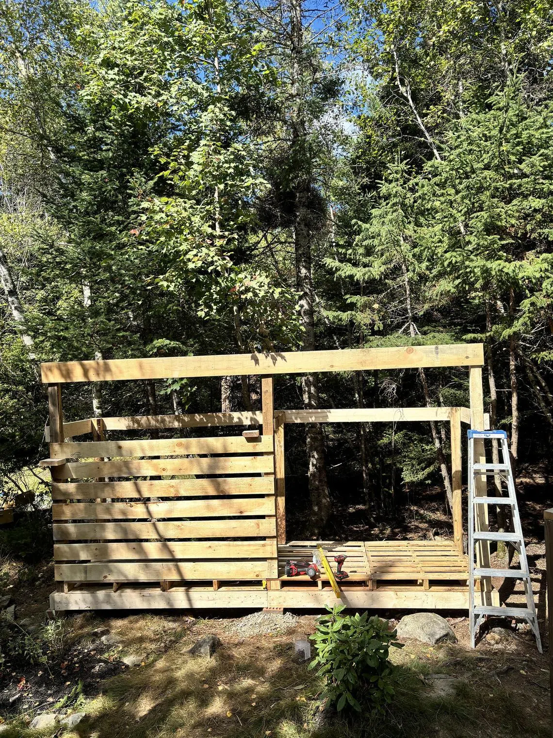 The woodshed that the writer and her friend built over three days.
