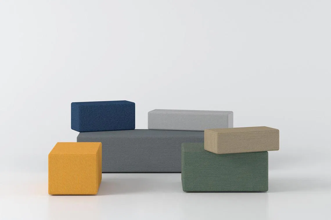 Another highlight is a collection of mousse-like Softsoft Poufs. The forms are sheathed in soft, smooth and stretchable Kvadrat Uniform Melange fabric, which is ultra-light to the touch.