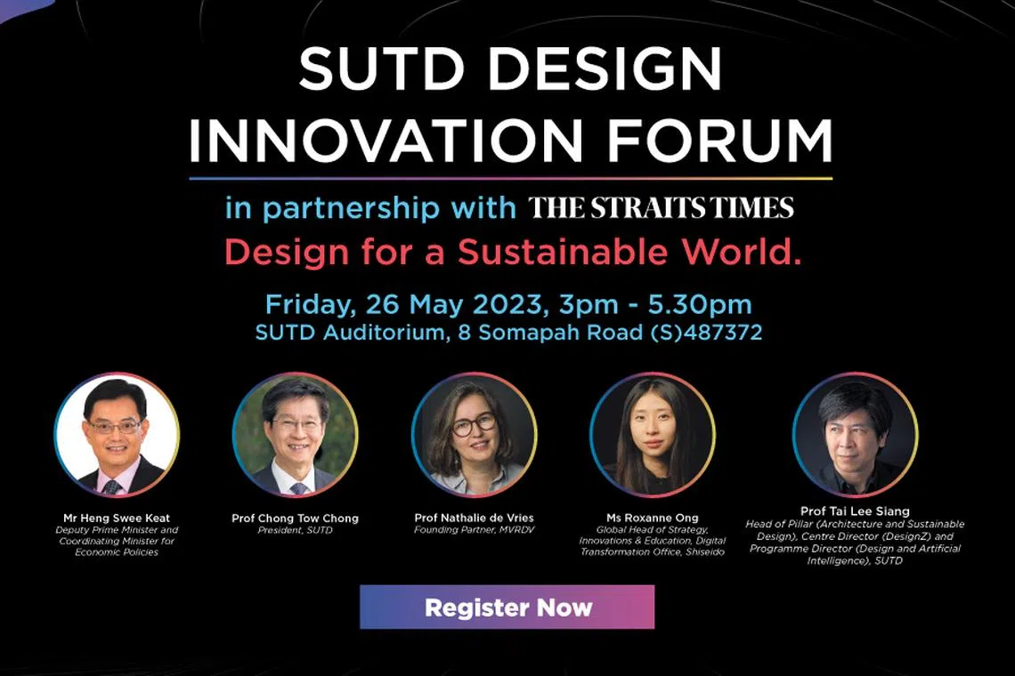 Register to attend the Design Innovation Forum by the Singapore University of Technology and Design (SUTD), in partnership with The Straits Times.