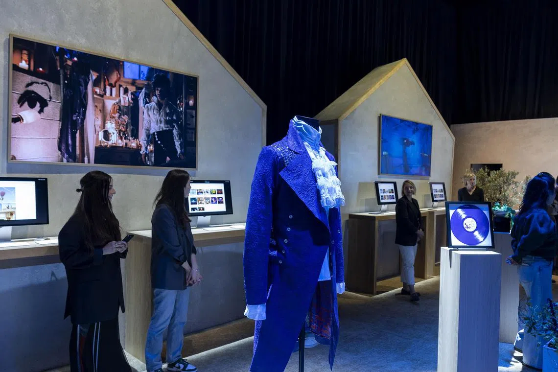 Items from some of the featured listings, including the house in Minneapolis where singer Prince’s character lived in the film Purple Rain, displayed in Los Angeles on May 1.