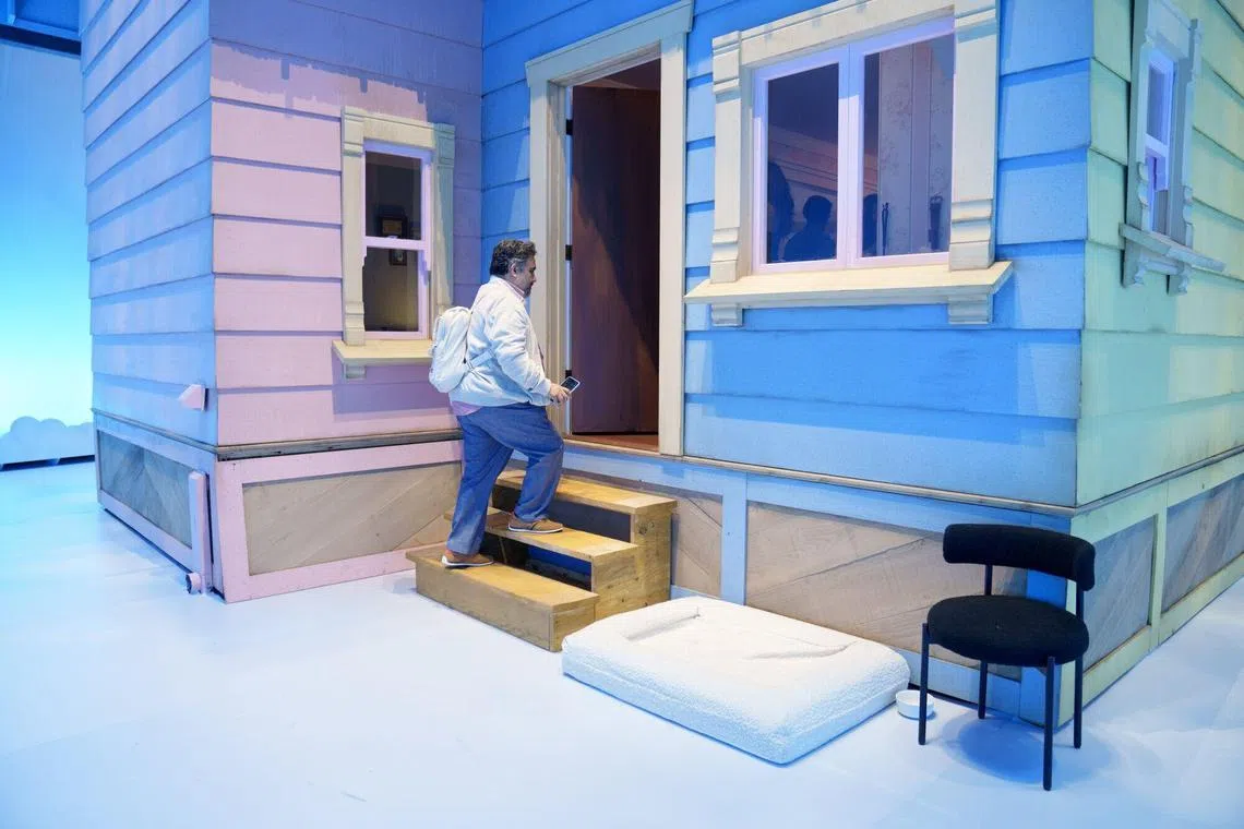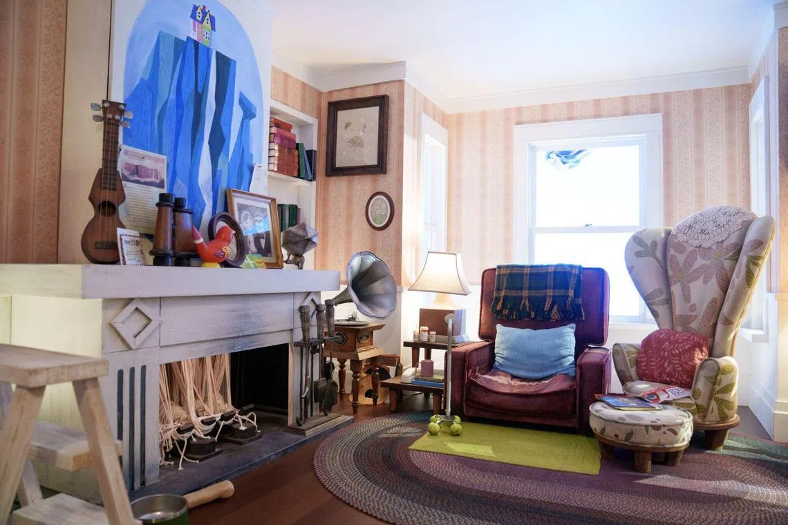 A replica of a house from the movie Up at an Airbnb news conference in Los Angeles on May 1.