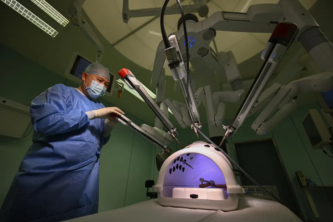 Over at Mount Elizabeth Novena Hospital, a hulking 800kg robot assistant helps surgeons with complex microsurgery that almost halves the length of an operation, with less blood loss in the patient and faster healing times.