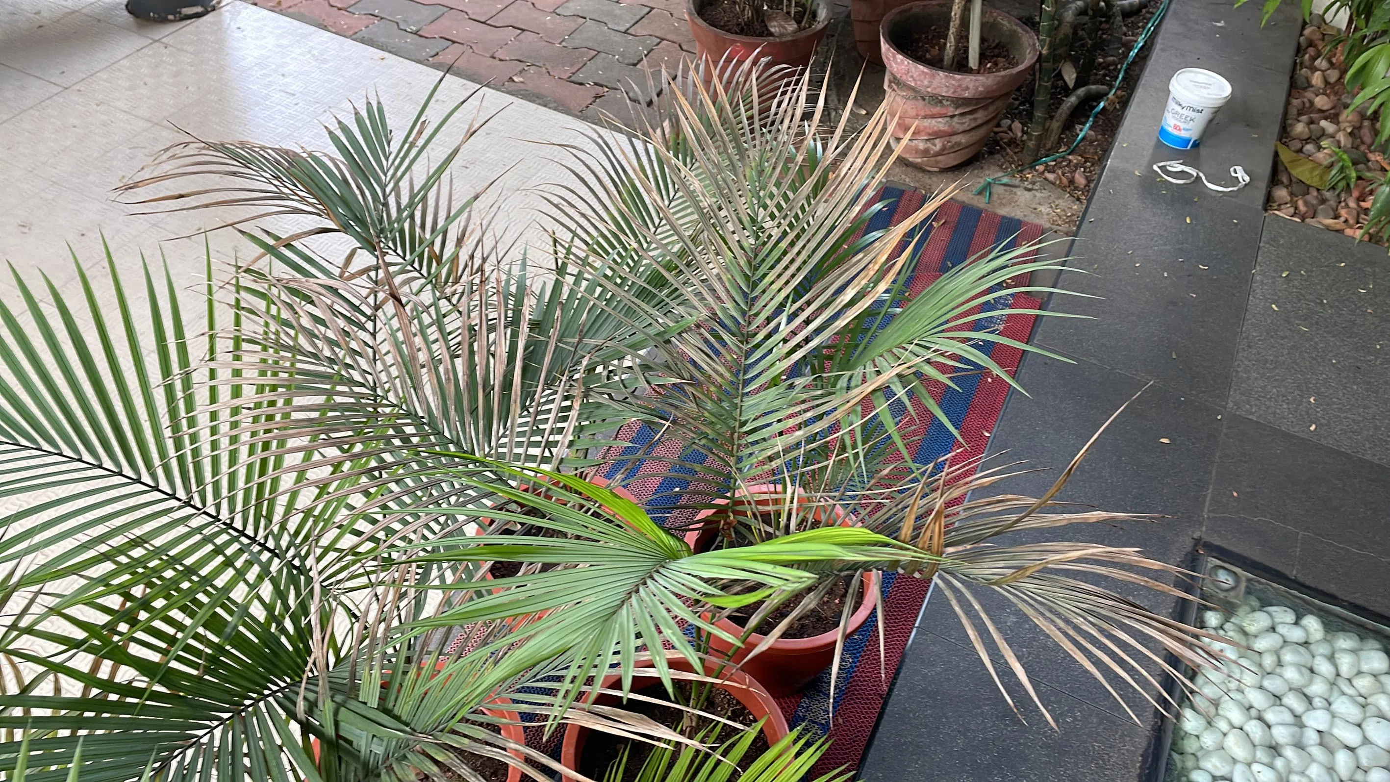 The palm plants’ roots may be damaged from transplantation or another injury.