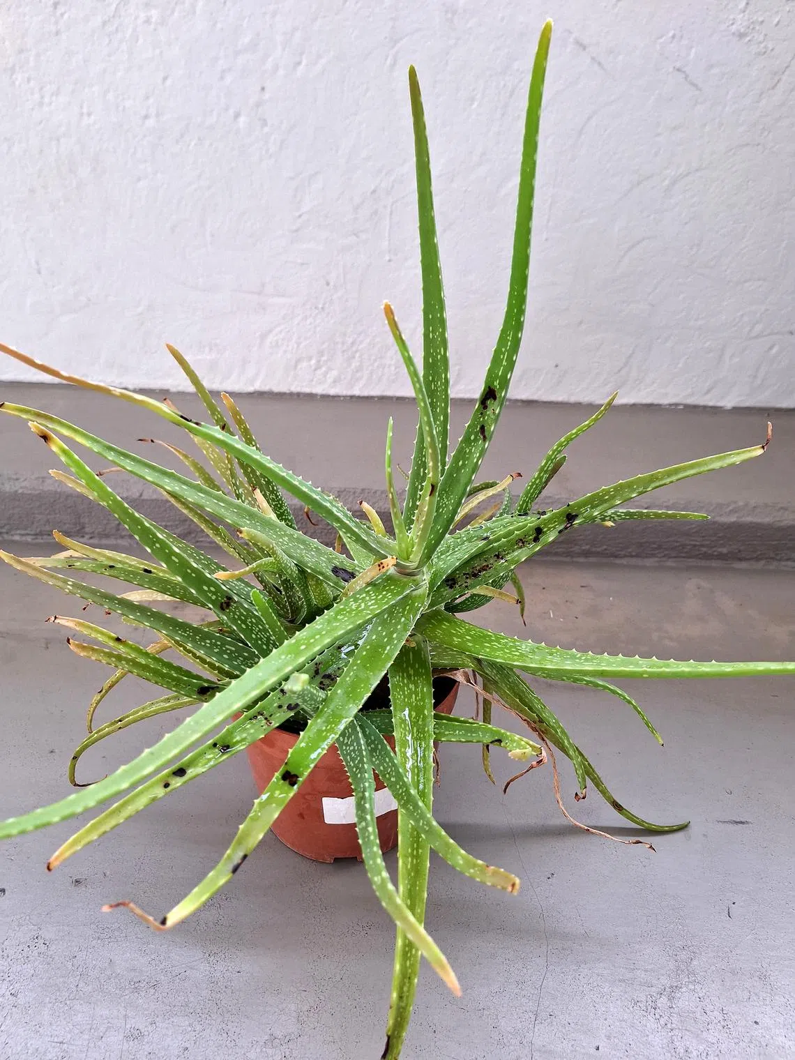 Why are there black spots on my aloe vera plant? I water it weekly and fertilise it monthly.