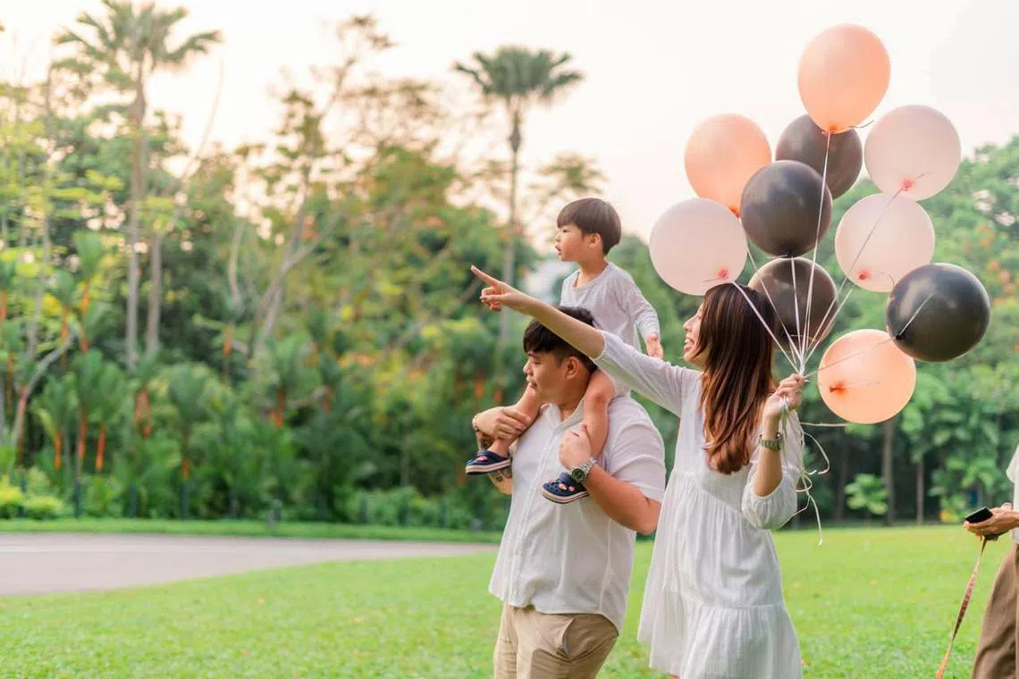 Comedian, singer and interior design entrepreneur Kelvin Tan with his wife Angie and their son.