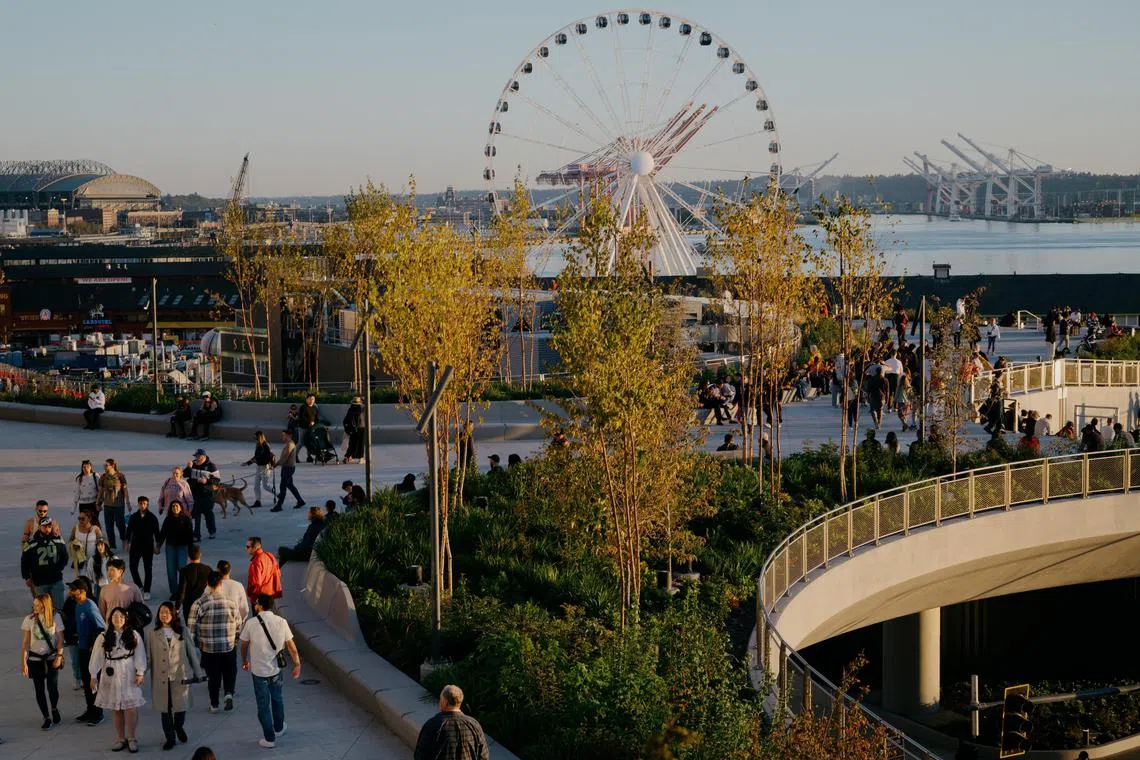 In part, the crowds are celebrating the waterfront’s emergence from the shadow of the fume- and noise-spewing Alaskan Way Viaduct, which formed a highway barrier that Seattleites had reviled since its construction in the 1950s. Its 2019 demolition made room for the promenade.