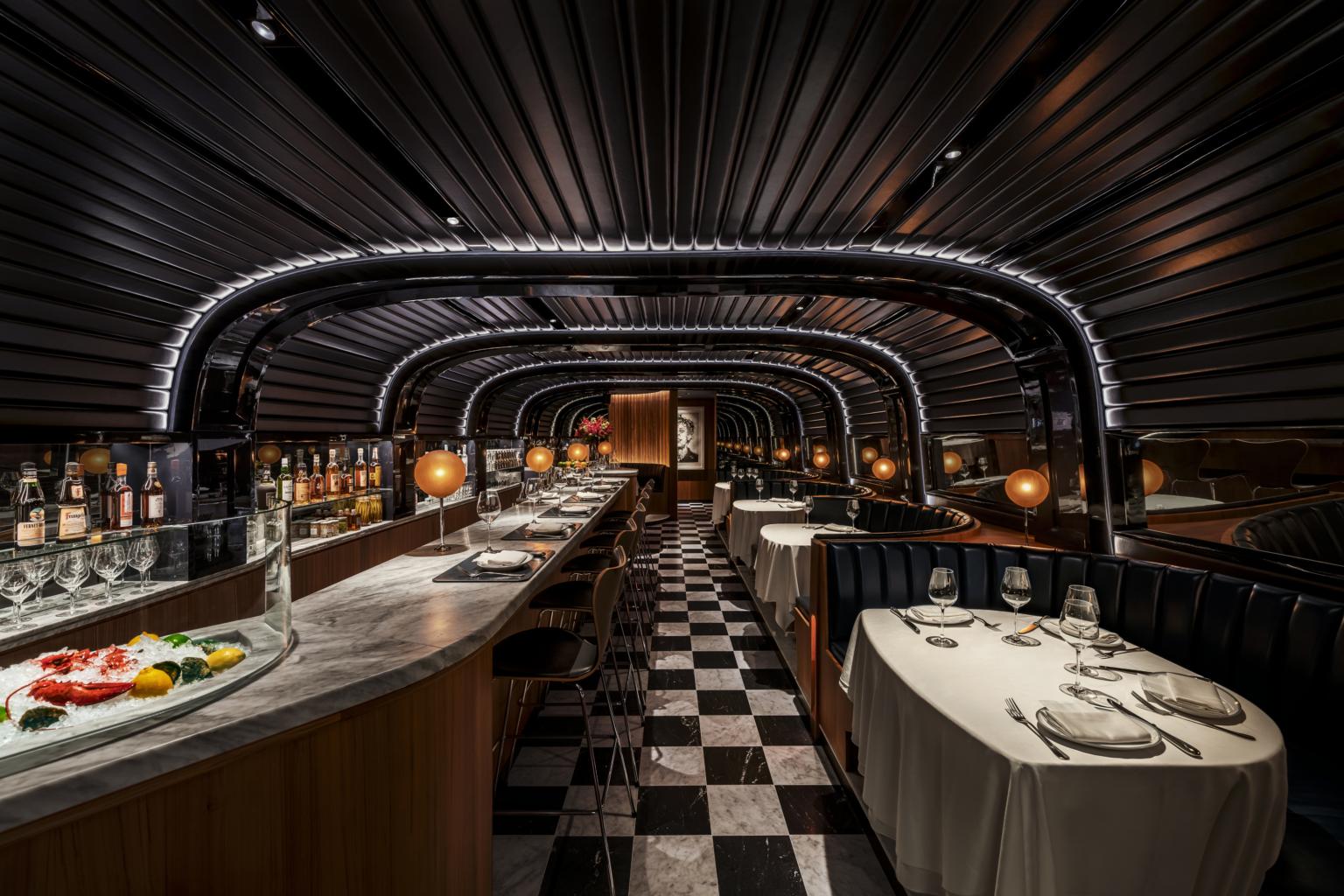 The Clubroom features custom-coloured leather and rich wooden tones that create private niches.