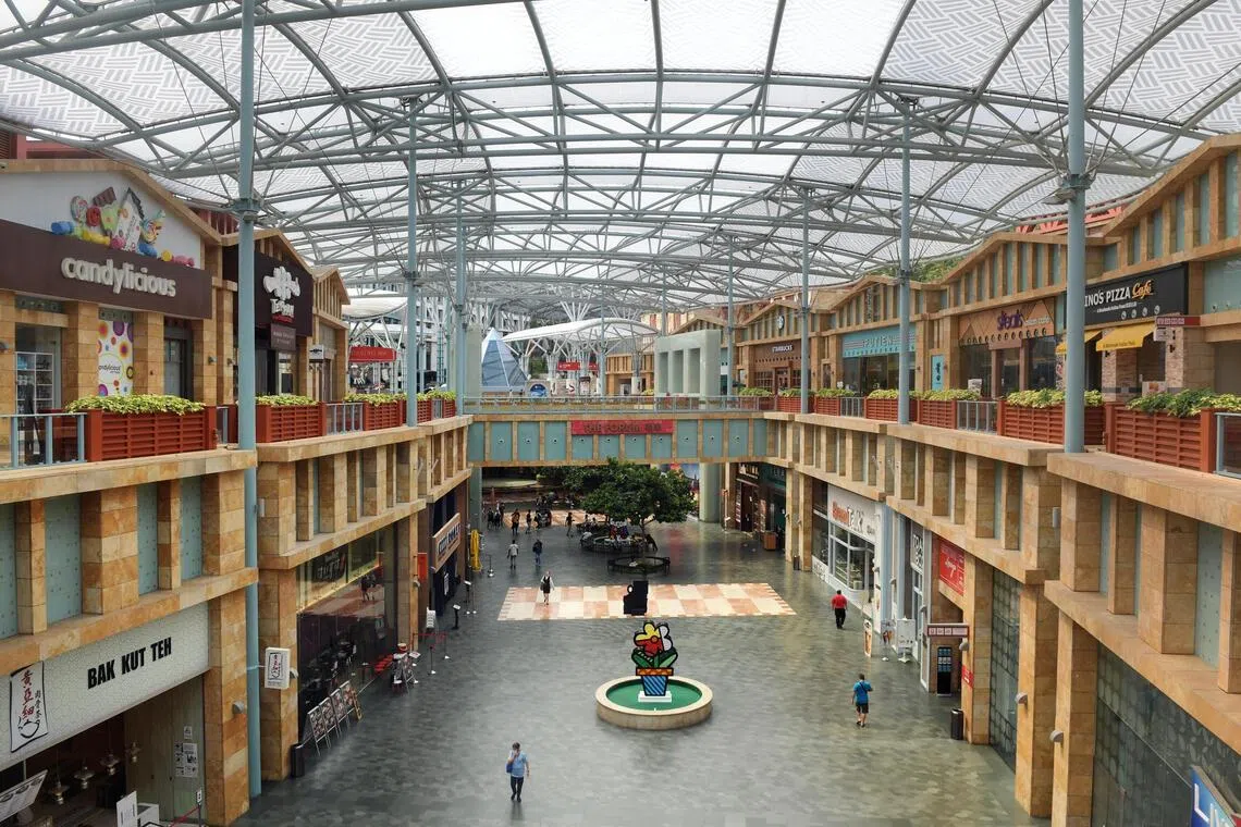 Parts of the newly renovated Temasek Shophouse (left) and Weave mall in Resorts World Sentosa.