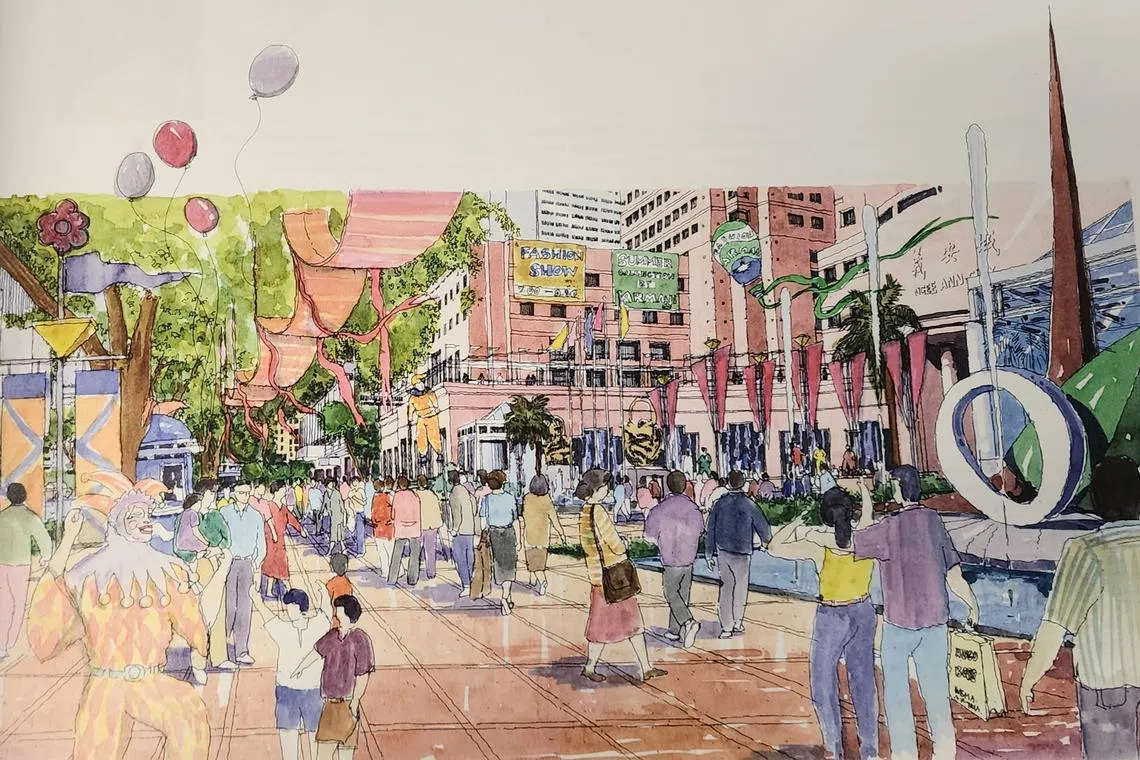 Artist impression created in 1999 of Orchard Road as a vibrant and inclusive space for planned and spontaneous activities.