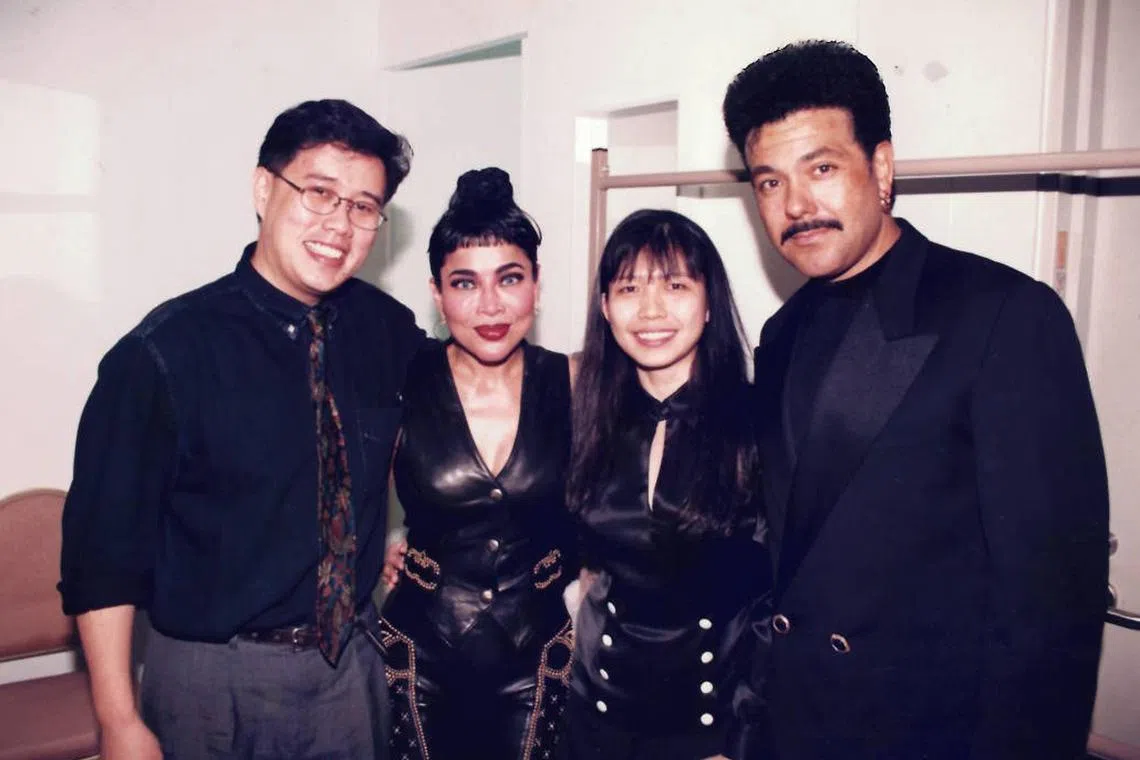 A 1995 photo of Mr Bernard Oh (far left) with entertainer Anita Sarawak (second from left) at the launch of Bugis Junction and InterContinental Hotel.