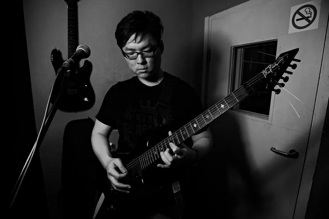 A 2012 photo of Mr Tung Ching Yew recording an original composition in the studio.