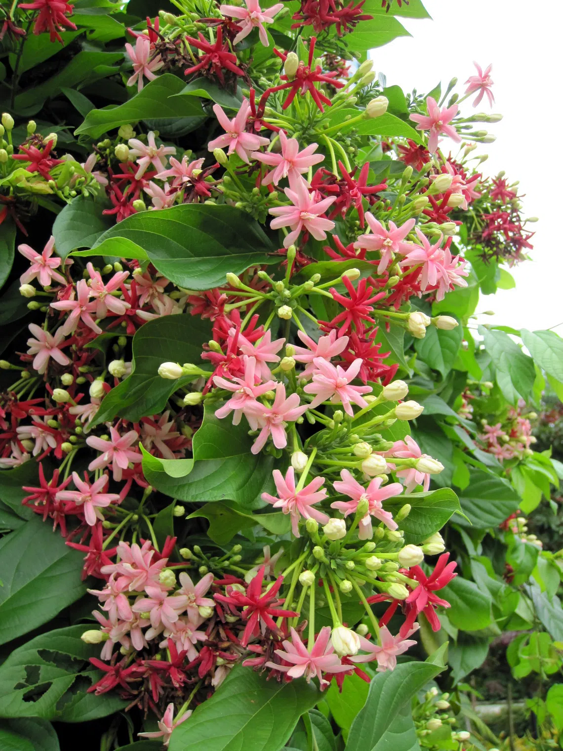 The Rangoon Creeper is a large perennial vine that needs to grow on a strong support. Once established, it is relatively drought-tolerant.