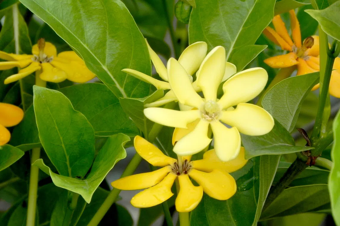 The Golden Gardenia produces blossoms quite unlike the common white ones that most gardeners may be familiar with.