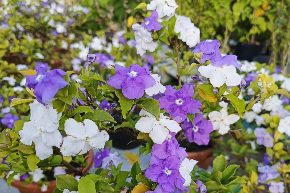 With regular fertilisation, it can produce many fragrant flowers that turn from purple to blue or mauve, and finally to white, over just a few days – hence its name.