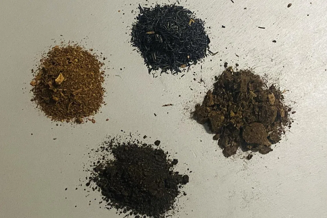 Organic materials that make up the bulk of soil-less growing mixes include (clockwise from left) cocopeat, burnt rice husks, peat moss and compost.