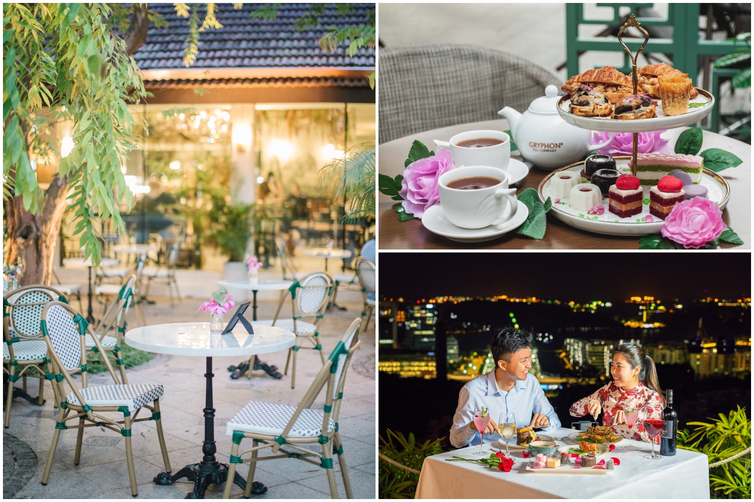 (Clockwise from left) Le Jardin restaurant, Wildseed Cafe and Dusk Restaurant & Bar.