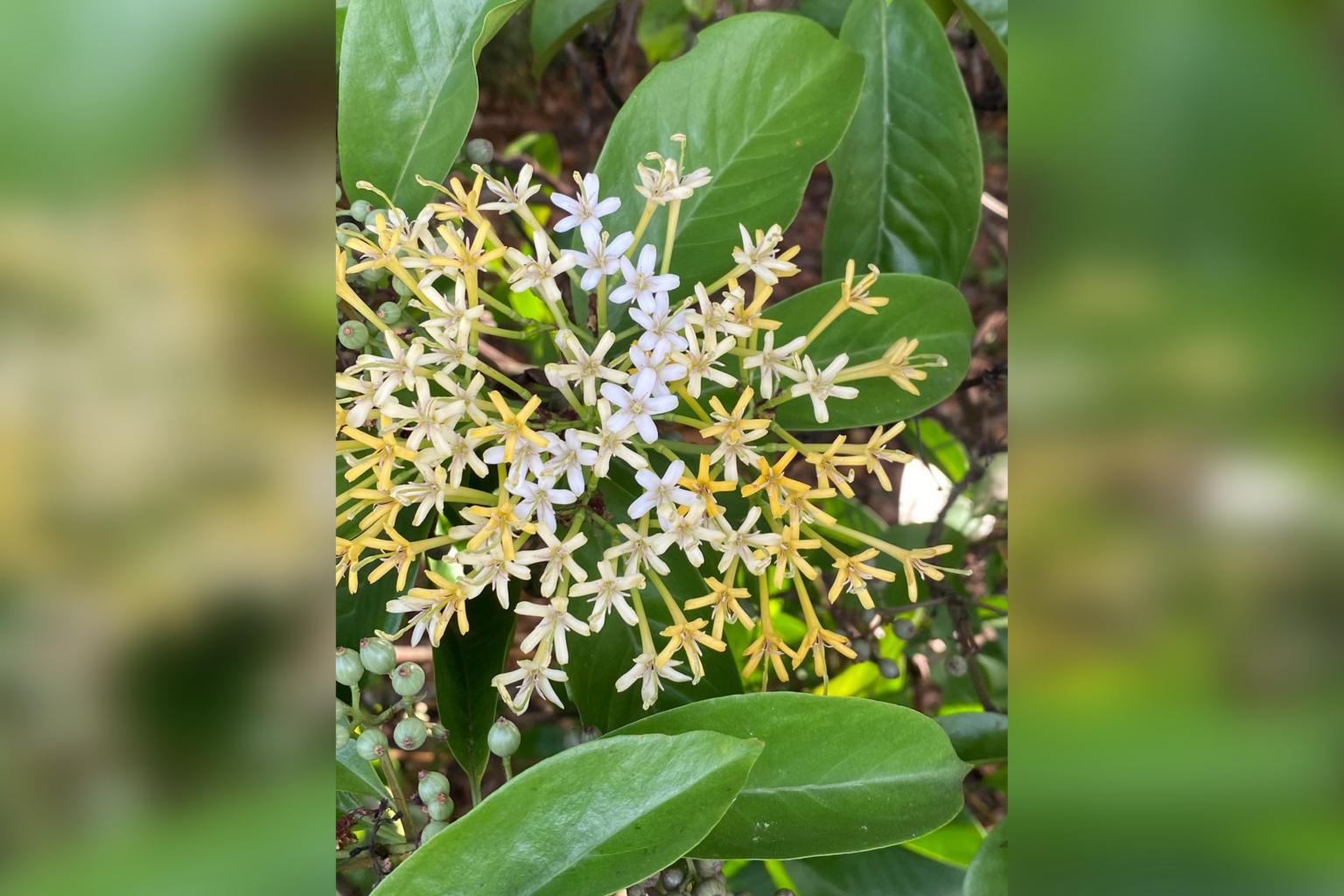 The plant, commonly called the River Tarenna, is a native plant of Singapore. Its botanical name is Tarenna fragrans.