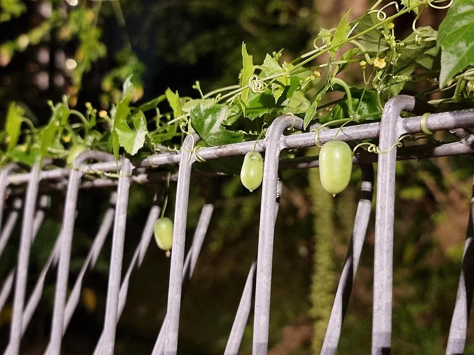 A plant is creeping along the fence belonging to my mother. All its fruit fell off during last week's storm. I found one on the ground and it was dark green. Is it a Mexican sour cucumber?